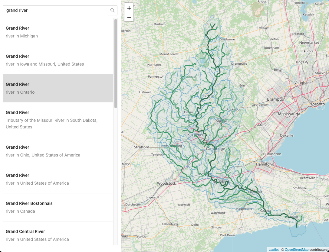 Integration of text and geospatial search for hydrographic datasets using the lucene search library